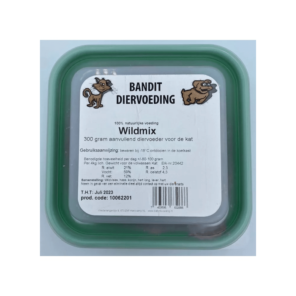 100% wild spiervlees, orgaanvlees (long, lever, hart), haas, konijn en hert