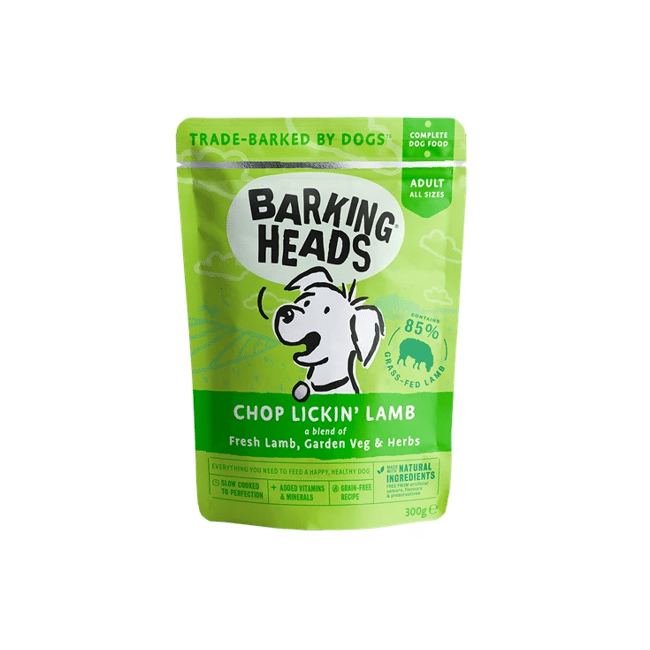 Barking Heads Chop Lickin' Lamb wordt langzaam gekookt tot in de puntjes met alleen natuurlijke ingrediënten van de beste kwaliteit. Dit verrukkelijke recept natvoer voor volwassen honden met toegevoegde vitamines en mineralen bevat 85% grasgevoerd lamsvlees, en wat nog beter is... het is ook nog eens graanvrij! Vermengd met een serieus lekkere combinatie van tuingroenten en kruiden, wordt deze lamslunch niet voor niets "chop lickin" genoemd!