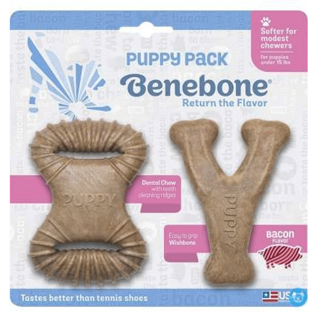 Benebone Wishbone Puppy Bacon is een duurzaam kauwspeeltje van hoge kwaliteit. Benebones zijn voorzien van een echte smaak.
