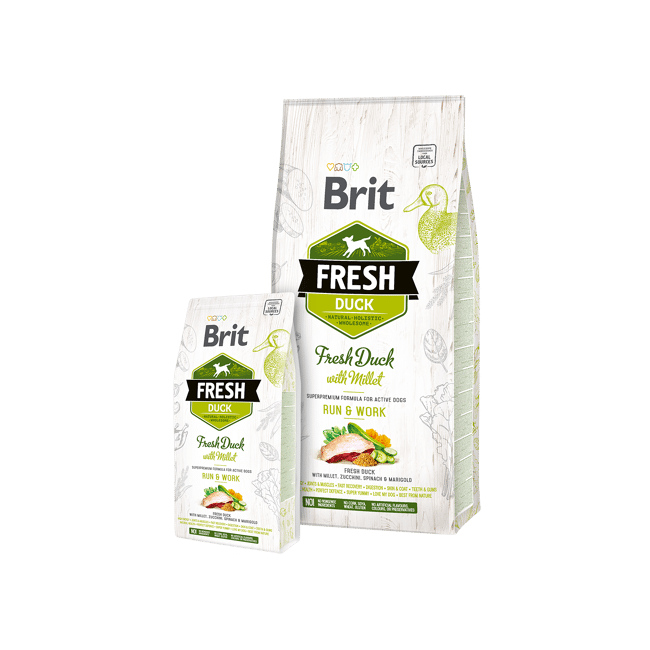 Samenstelling: verse eend (40%), gedroogde eend (30%), kippenvet (geconserveerd met tocoferolen), haver, gierst (4%), boekweit, appels, hele suikerbiet, zalmolie, kippenlever, bakkersgist, lijnzaad, collageen, courgette (2%), spinazie (0,4%), algen, zwarte bes, peterselie, rozemarijn, tijm, goudsbloem (0,3%), paardenbloem, probiotica (Enterococcus faecium 1x109 kve), glucosamine 1700 mg/kg, chondroïtinesulfaat 1300 mg/kg, fructo-oligosachariden 220 mg/kg, bèta-glucanen 200 mg/kg, mannan-oligosachariden 180 mg/kg, yucca 150 mg/kg, groenlipmossel 100 mg/kg.
