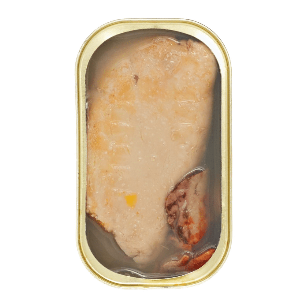 Zeeduivellever in blik op waterbasis. Gevangen in de Atlantische oceaan voor de kust van Galicië (Spanje). Zeeduivellever is een delicatesse en superfood boordevol voedingsstoffen, vitamines en mineralen. Het zorgt voor meer energie, een goede zuurstofvoorziening voor de spieren en kan een gezonde huid en vacht bevorderen. Zeeduivellever is een ideale toevoeging voor moeilijke eters en verbetert de eetlust. Het is qua eigenschappen vergelijkbaar met levertraan, maar dan veel lekkerder!