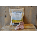Handig verpakt in 1 kg. zakken en in burgertjes van +/- 50 gram.