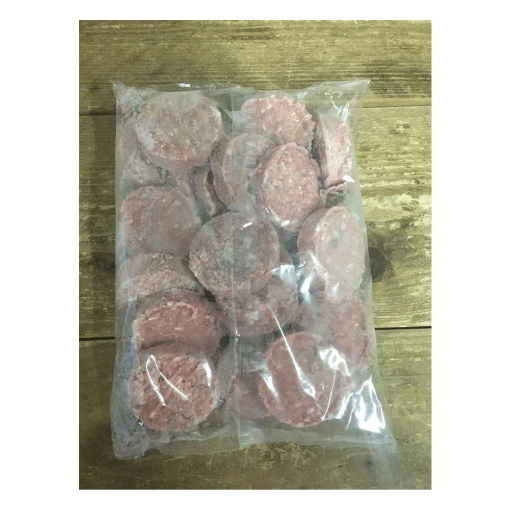 Handig verpakt in 1 kg. zakken en in burgertjes van +/- 50 gram.