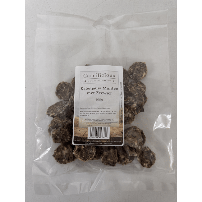 - Product: Carnilicious Kabeljauw munten met zeewier 100gr