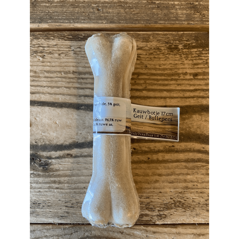 Overheerlijke gedroogde kauwbotjes op basis van geit/bullepees. Deze snack is geschikt voor stevige kauwers, hebben een harde textuur en zijn +- 12 cm.