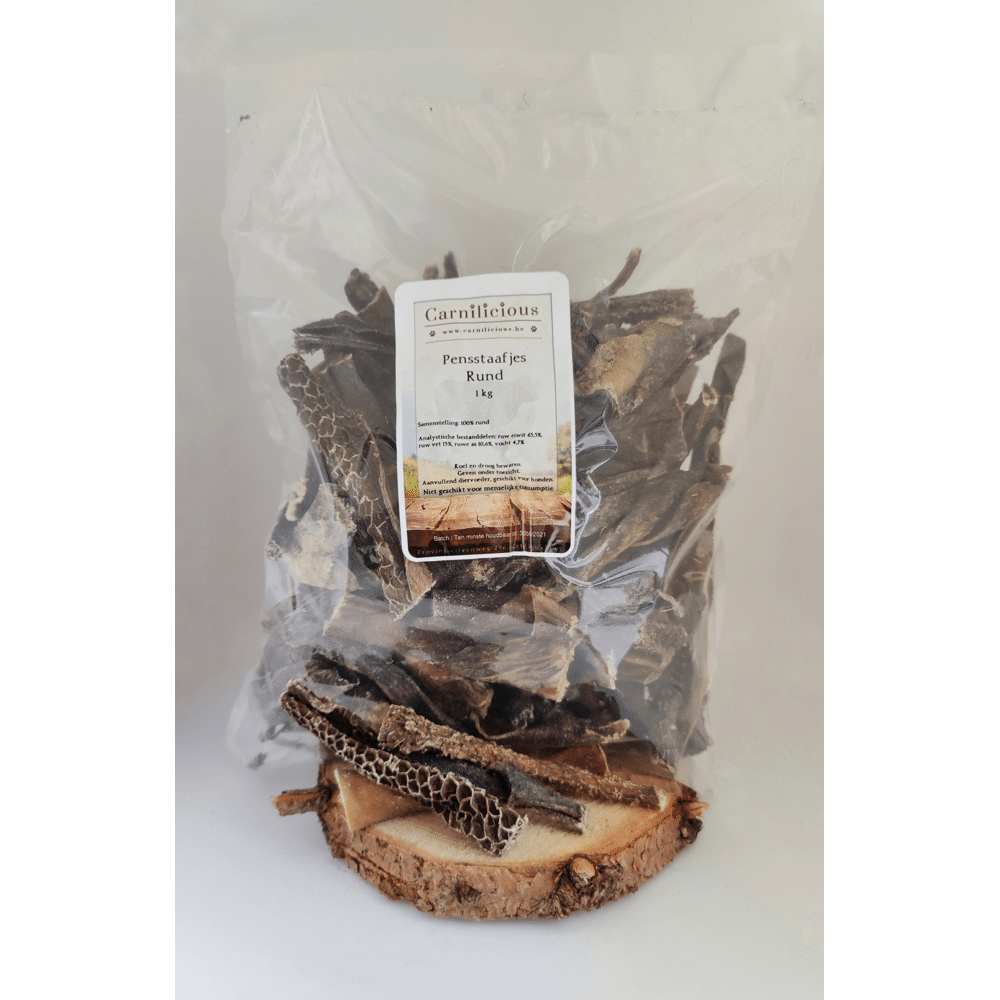 Een gedroogde snack bestaande uit 100% rund. Deze snack is krokant van textuur en 10 à 15 cm. Het ideale gezonde tussendoortje voor jouw viervoeter.