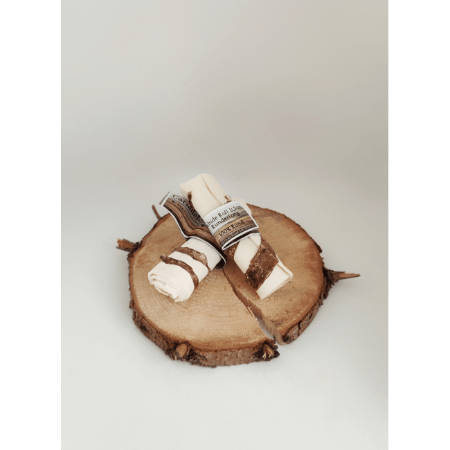 Rawhide roll naturel bestaat uit 100% rund. Een overheerlijke snack waar uw hond even zoet mee is. De roll is hard van textuur en +/- 11,5 cm. De rawhide (onderhuids bindweefsel) is afkomstig van rund en wordt op een 100% natuurlijke manier behandeld. Er komen geen chemicaliën aan te pas.
