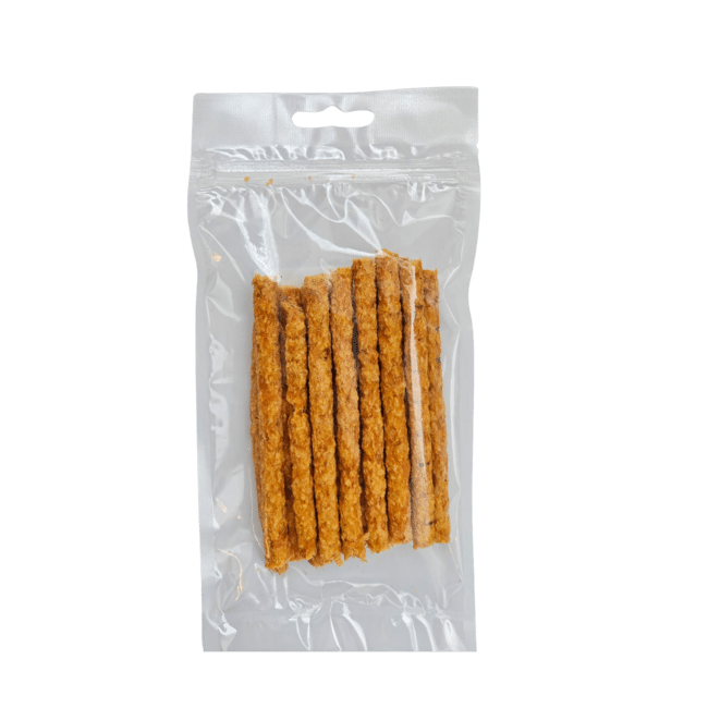 De sticks zijn ongeveer 12 cm lang en 0,7 cm dik en hebben een zachtere textuur.