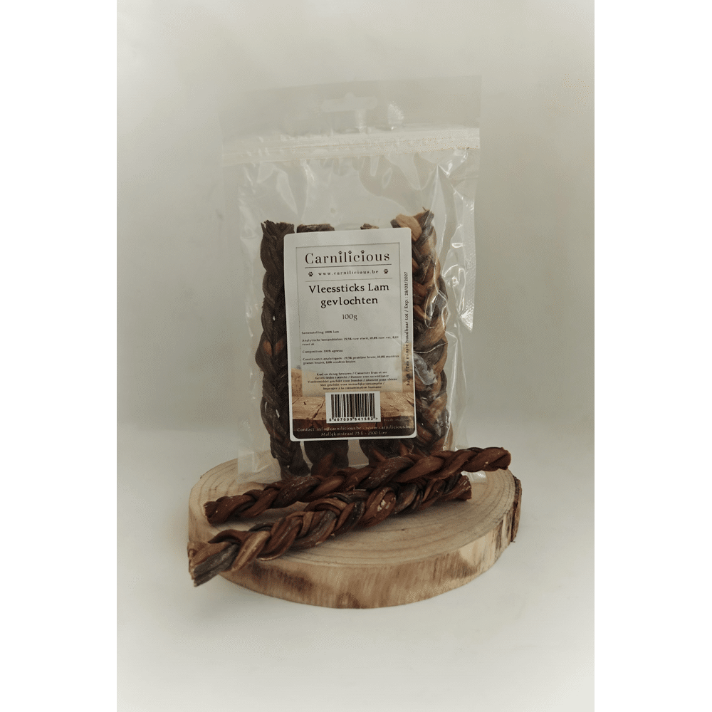 - 100 gr. gevlochten vleessticks lam