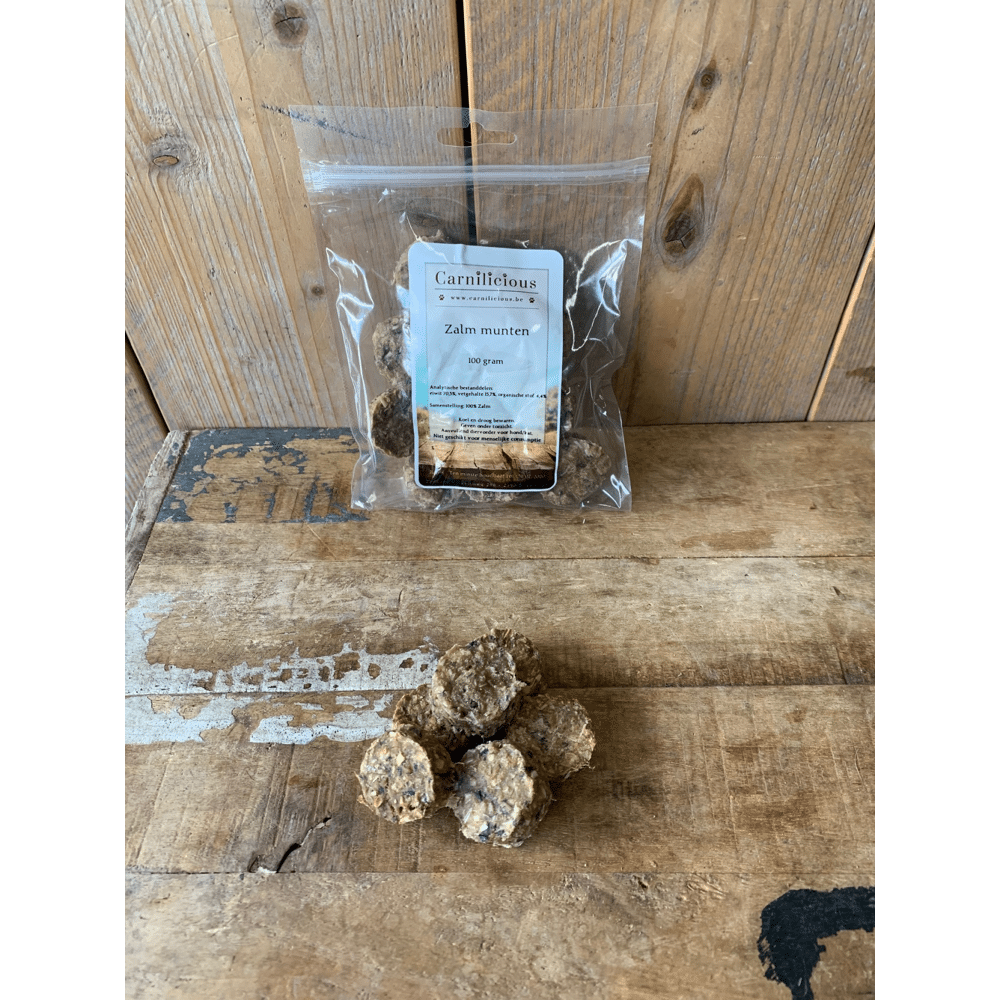 De munten zijn +/- 4cm en bestaan uit 100% zalm.