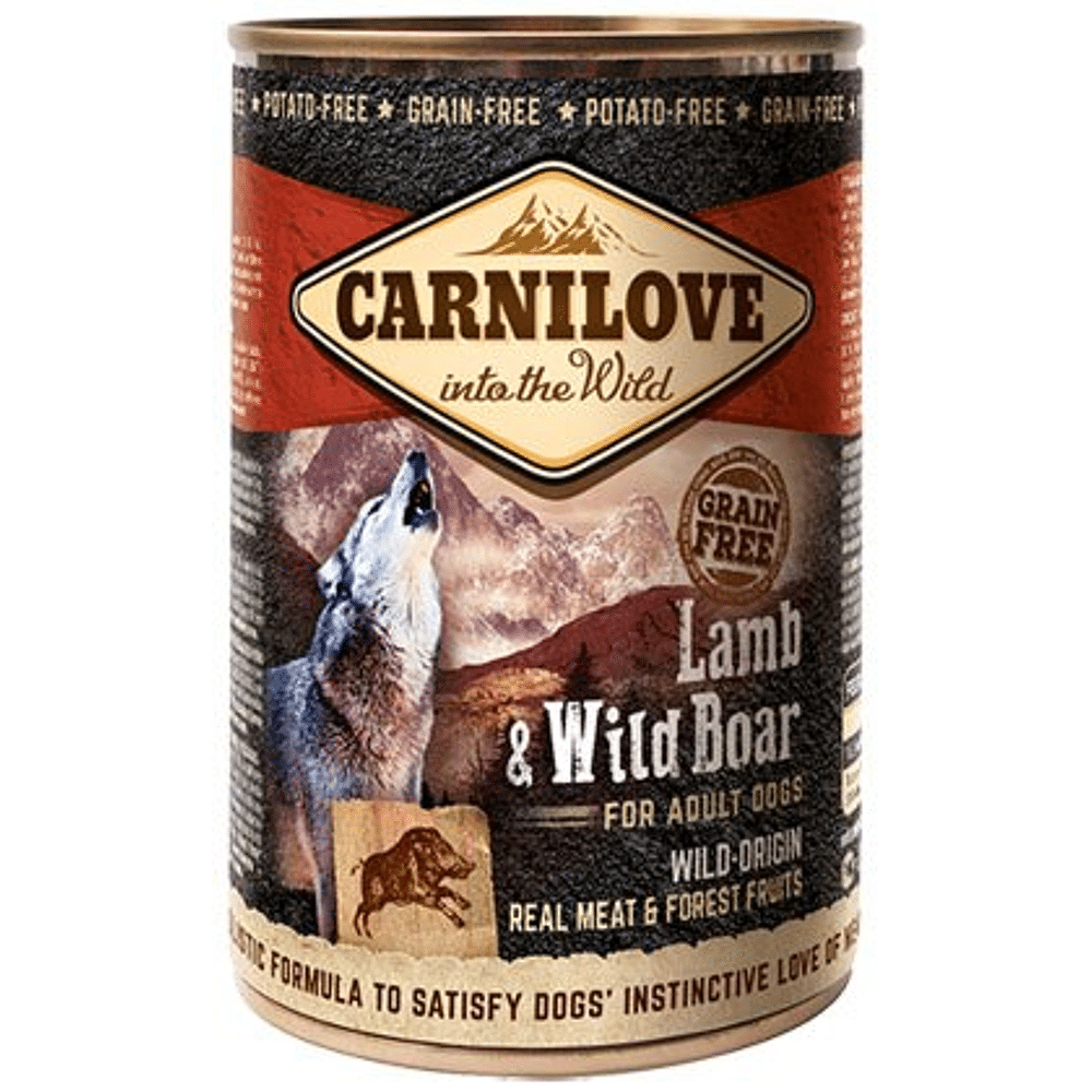 Carnilove into the wild blikvoer voor volwassen honden met lam & wild zwijn. Deze hoogwaardige complete blikvoeding bevat een hoog aandeel vlees en is volledig vrij van graan en aardappel.