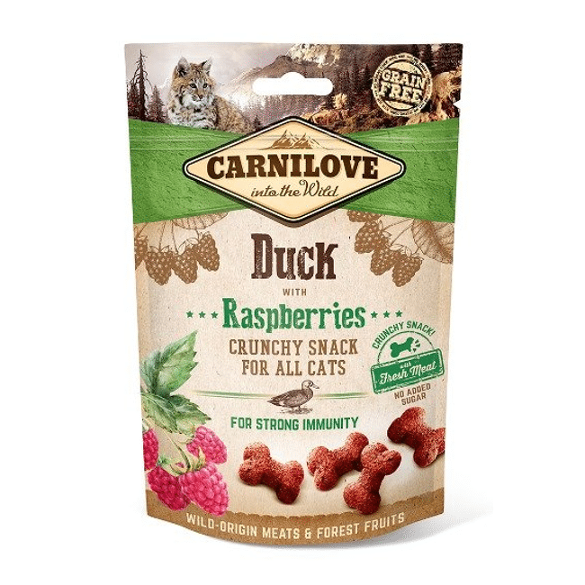 Graan- en glutenvrije koekjes, ideaal als tussendoortje. De variant Eend met frambozen is geschikt voor alle katten en speciaal voor een goede immuniteit.