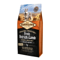 Vers struisvogel, ontbeend (26%), gedroogd lam (20%), gedroogde kalkoen (20%), kippenvet (geconserveerd met tocoferolen, 9%), pompoen, kikkererwten, erwten, kippenlever (3%), zalmolie (2%), appels, wortels, lijnzaad, gehydrolyseerde schaaldierschalen (een bron van glucosamine, 0,026%), kraakbeenextract (een bron van chondro tine, 0,016%), bakkersgist (een bron van mannan-oligosachariden, 0,015%), cichoreiwortels (een bron van fructo-oligosachariden, 0,01%), Yucca schidigera (0,01%), algen (0,01%), psyllium (0,01%), tijm (0,01%), rozemarijn (0,01%), oregano (0,01%), cranberry’s (0,0008%), bosbessen (0,0008%), duindoorn (0,0008%), gemberwortel (0,0008%), salie (0,0008%)