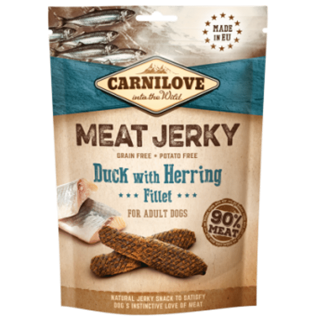 Heerlijke zachte snacks met een hoog vleesgehalte op basis van eend, kalkoen en haring.