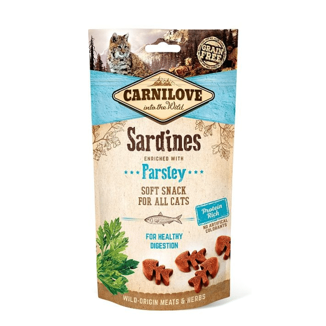 De Soft Snacks van CarniLove met sardines en peterselie zijn kwalitatieve en gezonde kattensnoepjes.