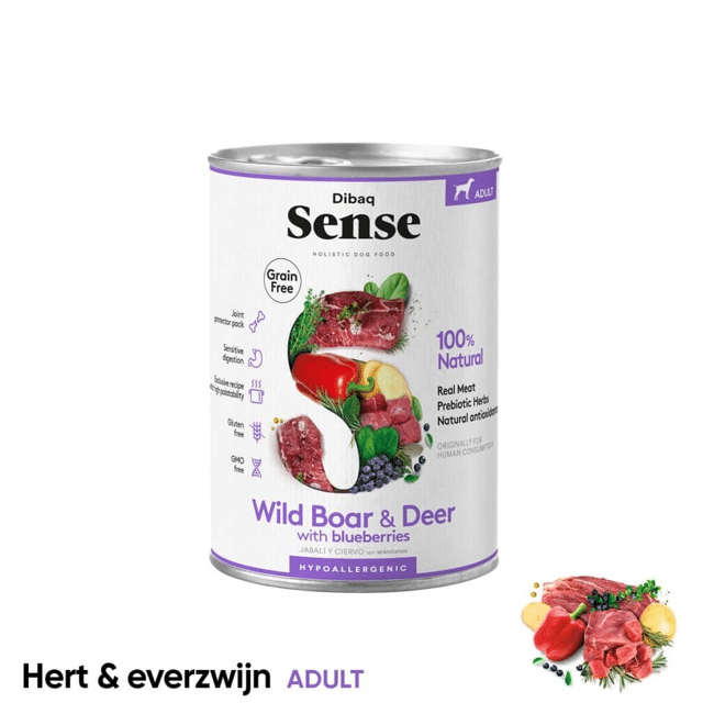 - Product: Dibaq Sense Blik Wild Zwijn & Hert 380gr