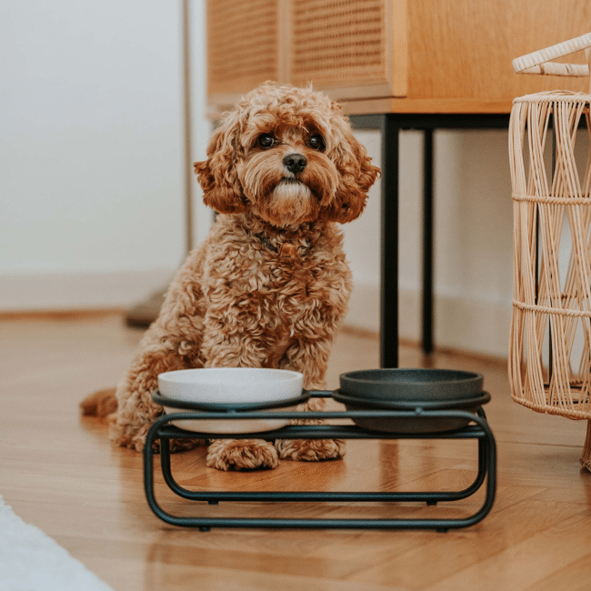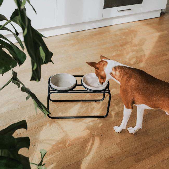 De BUTLER is een stabiele voerbakstandaard met antislip rubbers wat voorkomt dat de voerbak tijdens het eten en drinken verschuift. Dit vermindert morsen en houdt de vloer schoon.
