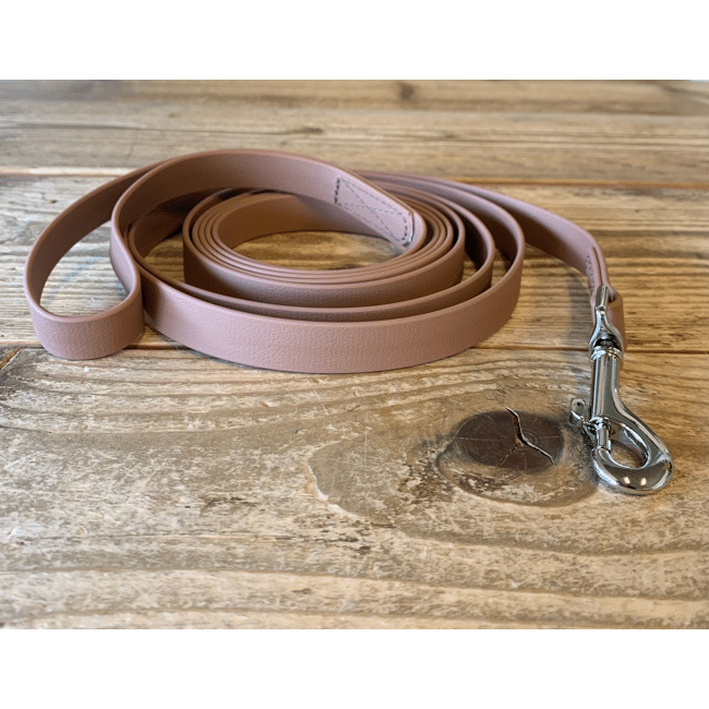 Lange lijn in PVC met handvat, soepel materiaal, met stevige karabijnsluiting.