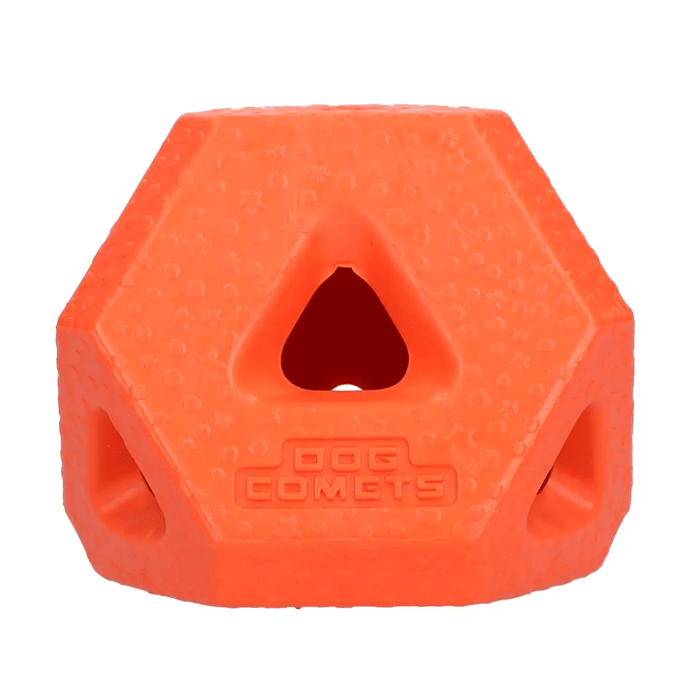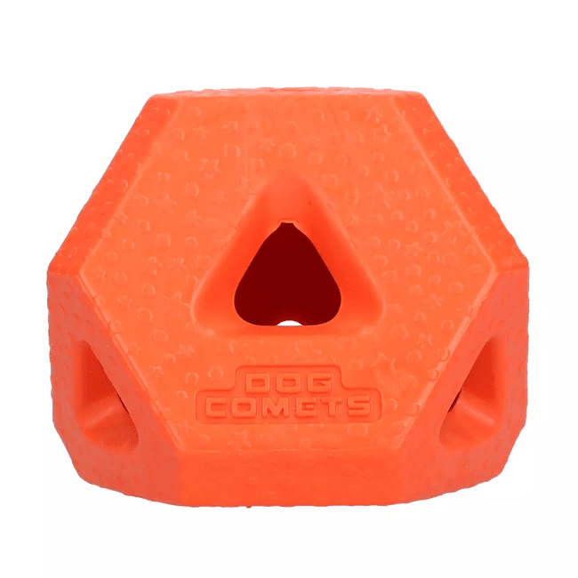 Deze duurzame traktatiekubus van stevig TPR-rubber is ontworpen voor interactief speelplezier. De bal kan eenvoudig worden gevuld met snacks of worden gebruikt om kauwsticks in vast te zetten, waardoor honden actief worden gestimuleerd. Het speelgoed stuitert op onverwachte wijze, wat extra uitdaging en speelplezier biedt tijdens spelletjes binnens- en buitenshuis. Het product is geen kauwspeeltje en er wordt aangeraden toezicht te houden tijdens het spelen.