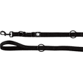 Deze nylon hondenriem is perfect voor avontuurlijke wandelingen! Met 3 verstelbare lengtes en handenvrije optie, matte zwarte afwerking en reflecterende stroken. Extra sterk dankzij dubbellaags nylon.