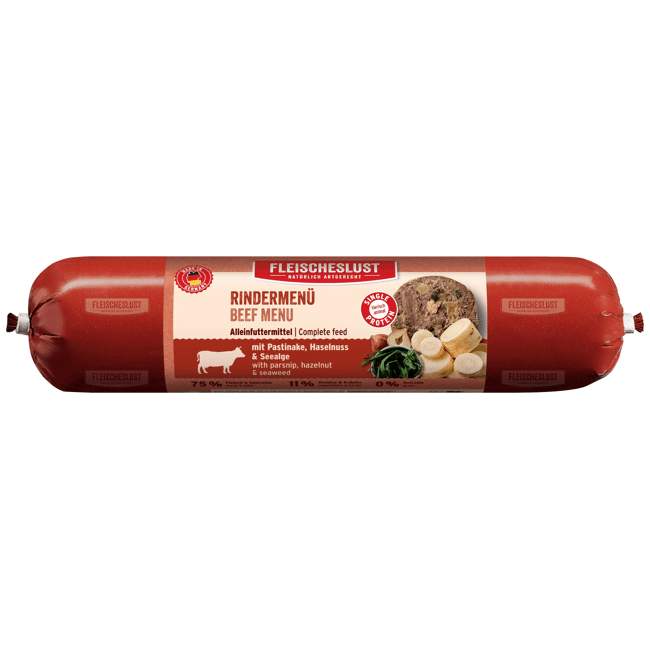 Dit rundvleesmenu met pastinaak, hazelnoten & zeewier bestaat voor 75% uit het beste spier- en orgaanvlees van rund. Met 11% knapperige verse groenten en waardevolle kruiden, aangevuld met hoogwaardige lijnzaadolie rijk aan omega-3-vetzuren.