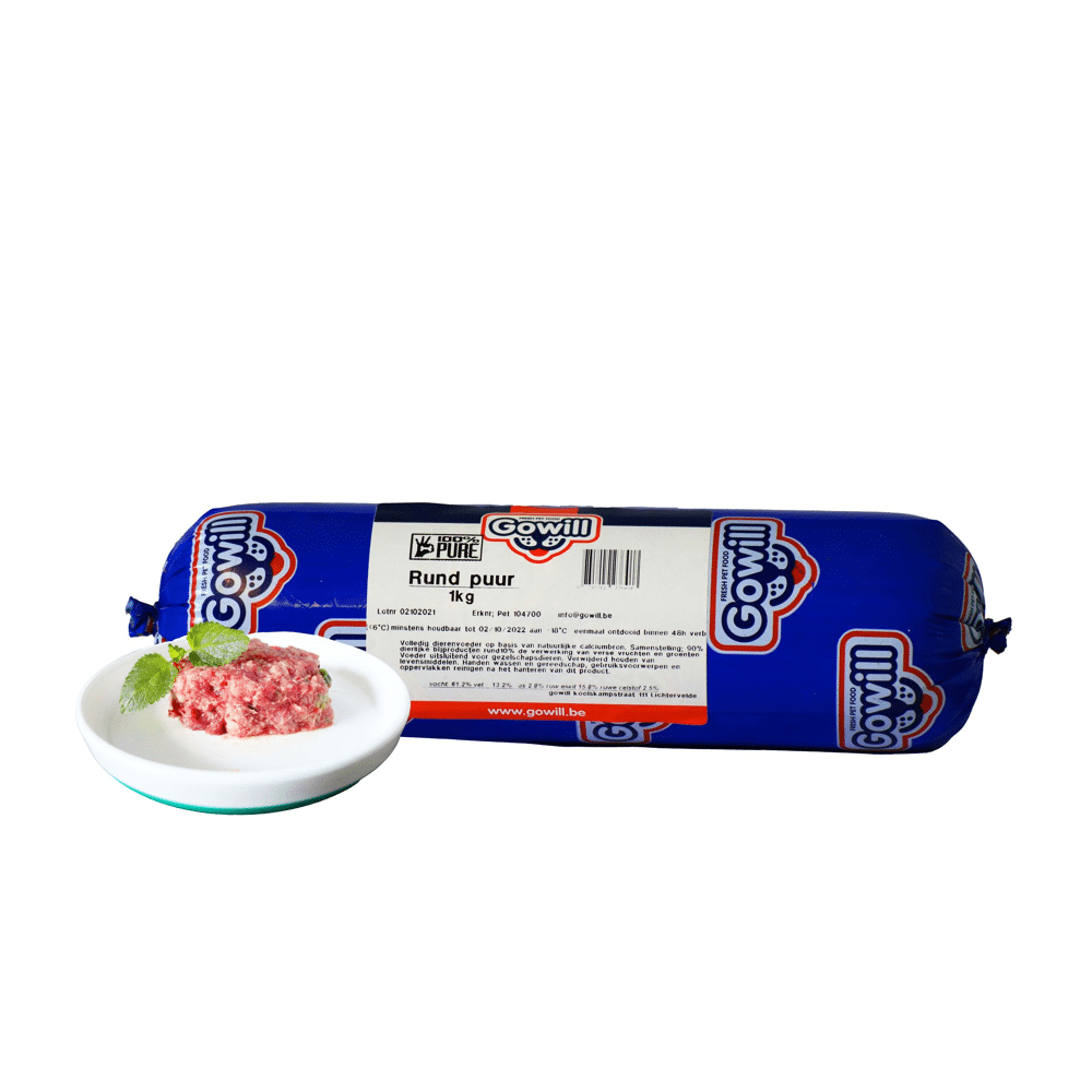 Gowill Puur Rund bestaat uit 100% rund en groenten, op basis van natuurlijke calciumbron.