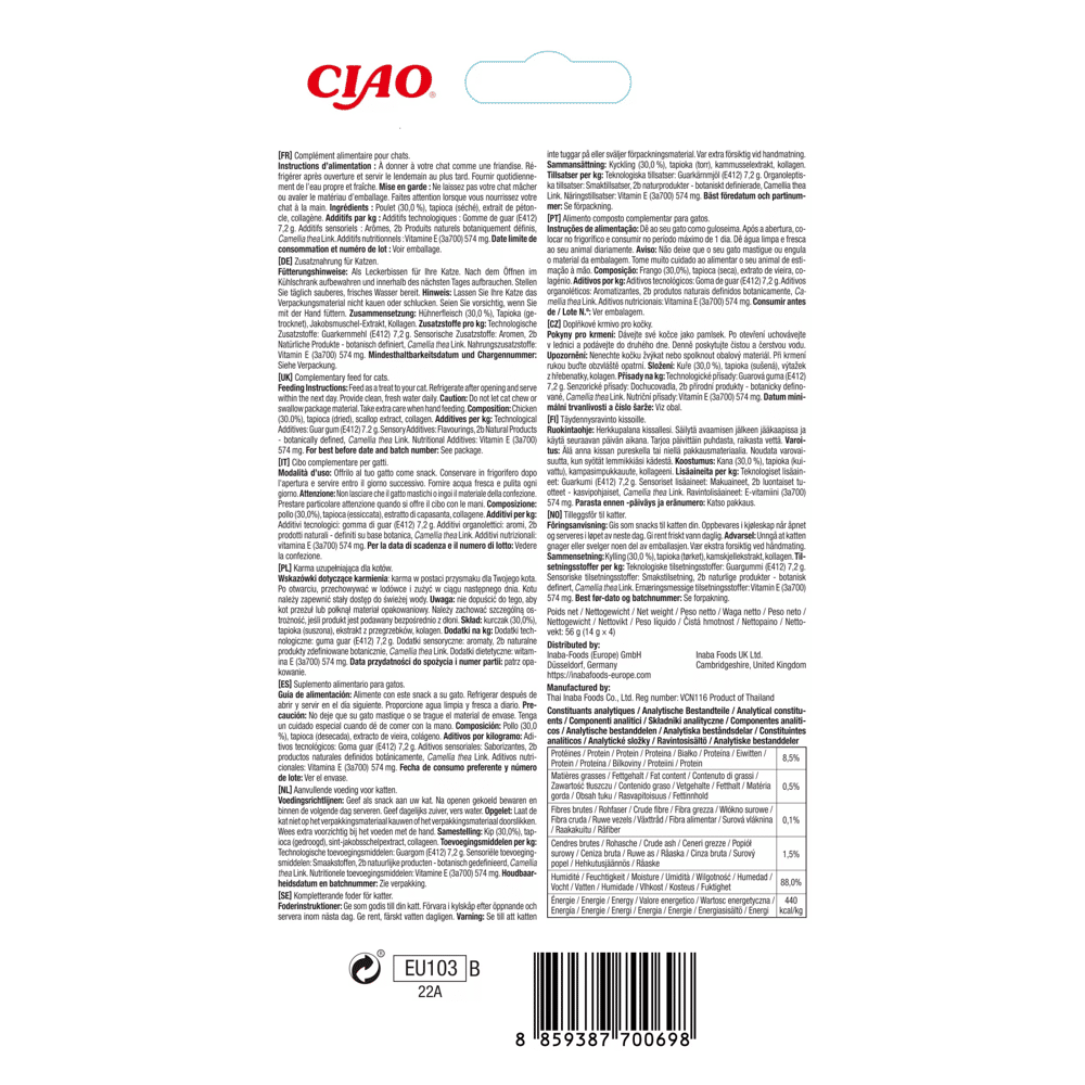 Elk Inaba product is gemaakt met lekkere ingrediënten van hoge kwaliteit, waaronder gekweekte kip en/of natuurlijke wildgevangen tonijn. Elke heerlijke, romige Churu tube bevat 88% vocht en slechts 6 calorieën (een tiende van de calorieën van traditionele droge kattensnoepjes), waardoor het een gezonde snack is die je met een goed gevoel kunt voeren.