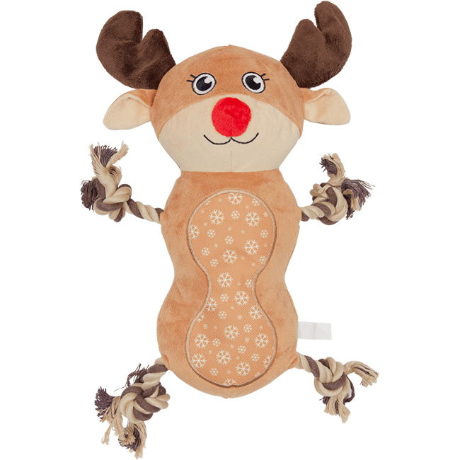 jack & vanilla JV Kerst Hondenspeeltje Rendier met touw 30cm