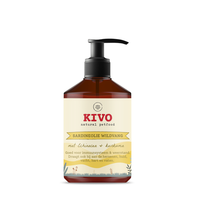 Dit supplement bestaat uit sardineolie wildvang, gecombineerd met de krachtige superfoods Echinacea en Kurkuma. Echinacea heeft weerstandsverhogende werking. Kurkuma kan ontstekingsremmend werken en is een sterke antioxidant. Doordat deze superfoods zwemmen in de sardineolie, zijn ze extra goed opneembaar door je hond.