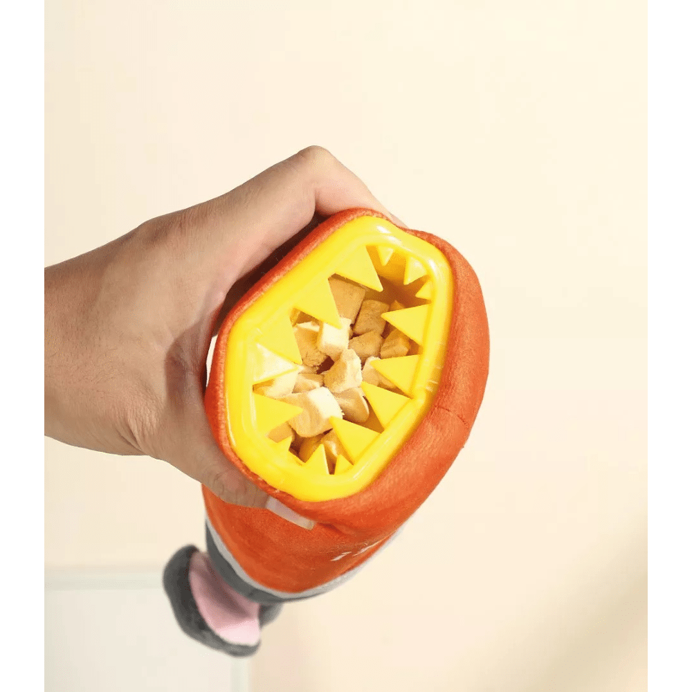 SNACK ATTACK combineert het smakelijke plezier van een traktatiedispenser met de opwinding van een interactief speeltje dat beweegt en knispergeluiden maakt als je erin knijpt. Vul het speeltje met traktaties en kijk hoe je hond bijt, trekt en schudt om ze er allemaal uit te krijgen.