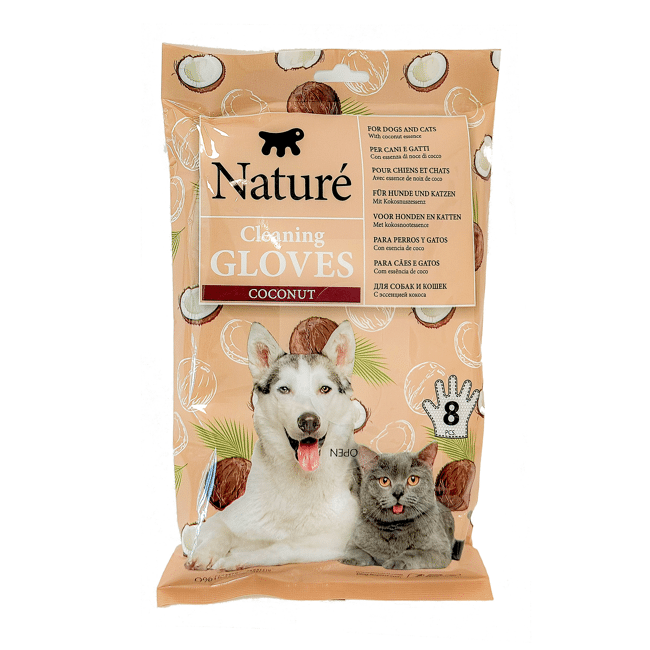 Bevochtigde wegwerp handschoen, ideaal om uw huisdier schoon te maken.
