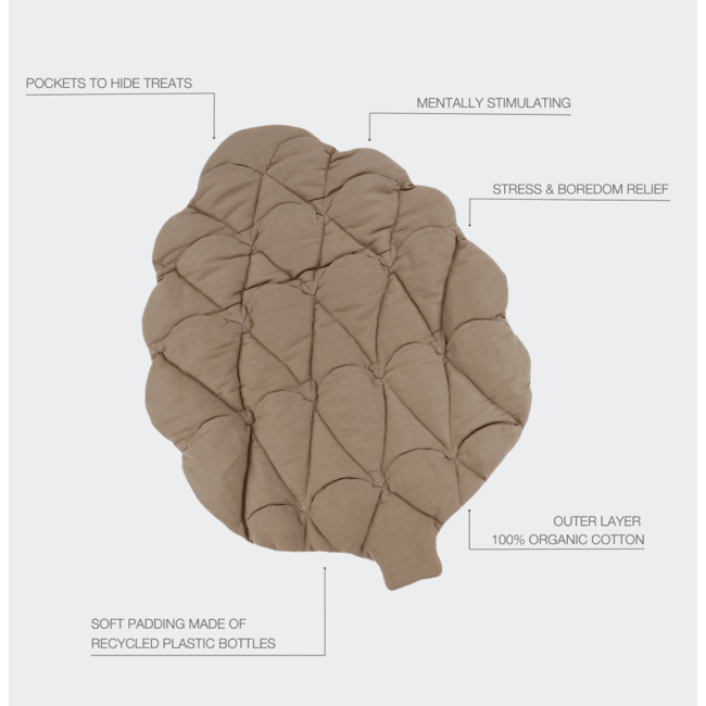 Laat de spelletjes beginnen! Snuffelen en zoeken naar traktaties is een gemakkelijke manier om leuke activiteiten binnenshuis aan te bieden. De PAIKKA Playmats hebben zakken om traktaties te verbergen. Kan ook worden gebruikt als een zachte slaapmat voor uw hond. Gemaakt van biologisch katoen met zachte vulling van gerecyclede plastic flessen.