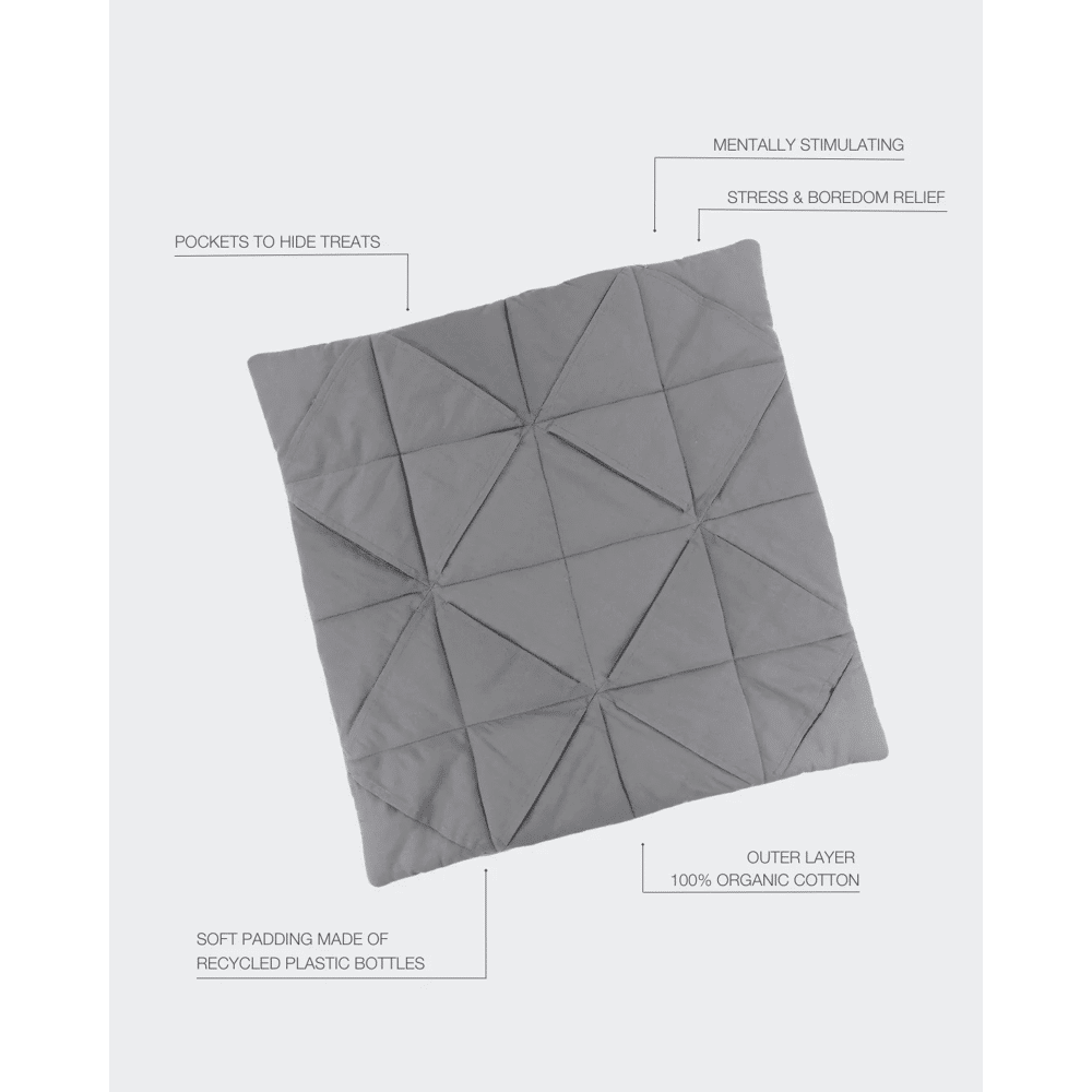 Laat de spelletjes beginnen! Snuffelen en zoeken naar traktaties is een gemakkelijke manier om leuke activiteiten binnenshuis aan te bieden. De PAIKKA Playmats hebben zakken om traktaties te verbergen. Kan ook worden gebruikt als een zachte slaapmat voor uw hond. Gemaakt van biologisch katoen met zachte vulling van gerecyclede plastic flessen.