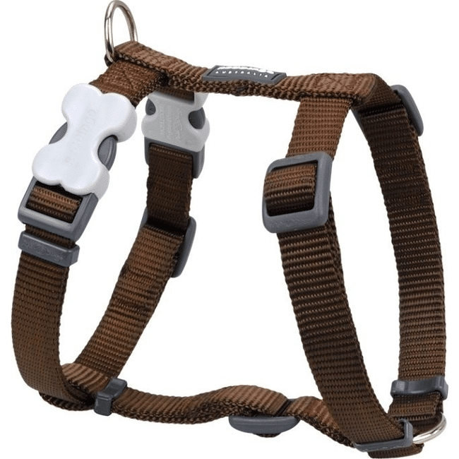 Verstelbaar zacht nylon hondentuig. Voorzien van de unieke RedDingo kliksluiting in de vorm van een botje en een RVS ring om de hond aan te lijnen.