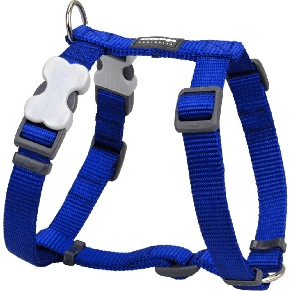 Verstelbaar zacht nylon hondentuig. Voorzien van de unieke RedDingo kliksluiting in de vorm van een botje en een RVS ring om de hond aan te lijnen.