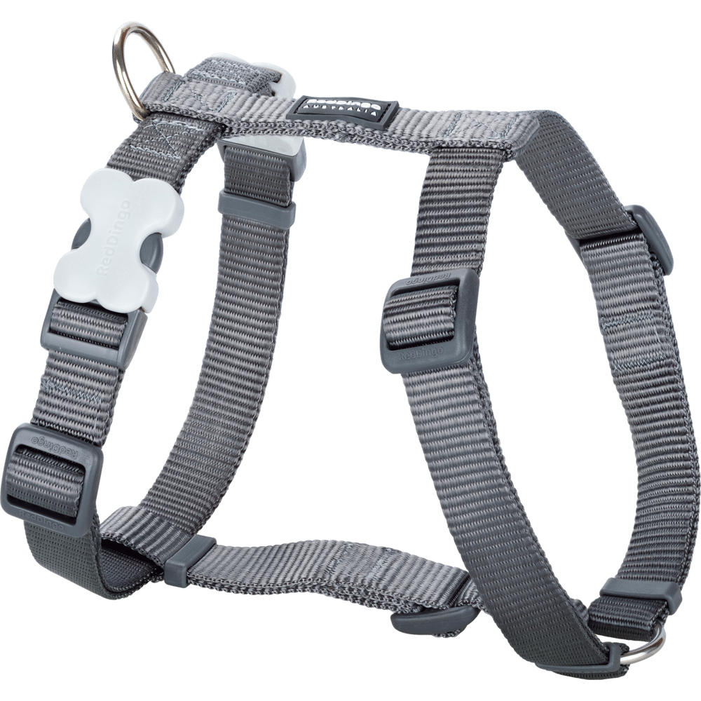 Verstelbaar zacht nylon hondentuig. Voorzien van de unieke RedDingo kliksluiting in de vorm van een botje en een RVS ring om de hond aan te lijnen.