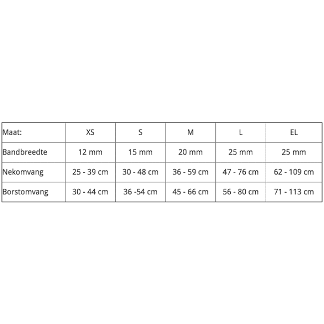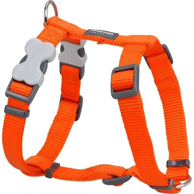 Verstelbaar zacht nylon hondentuig. Voorzien van de unieke RedDingo kliksluiting in de vorm van een botje en een RVS ring om de hond aan te lijnen.