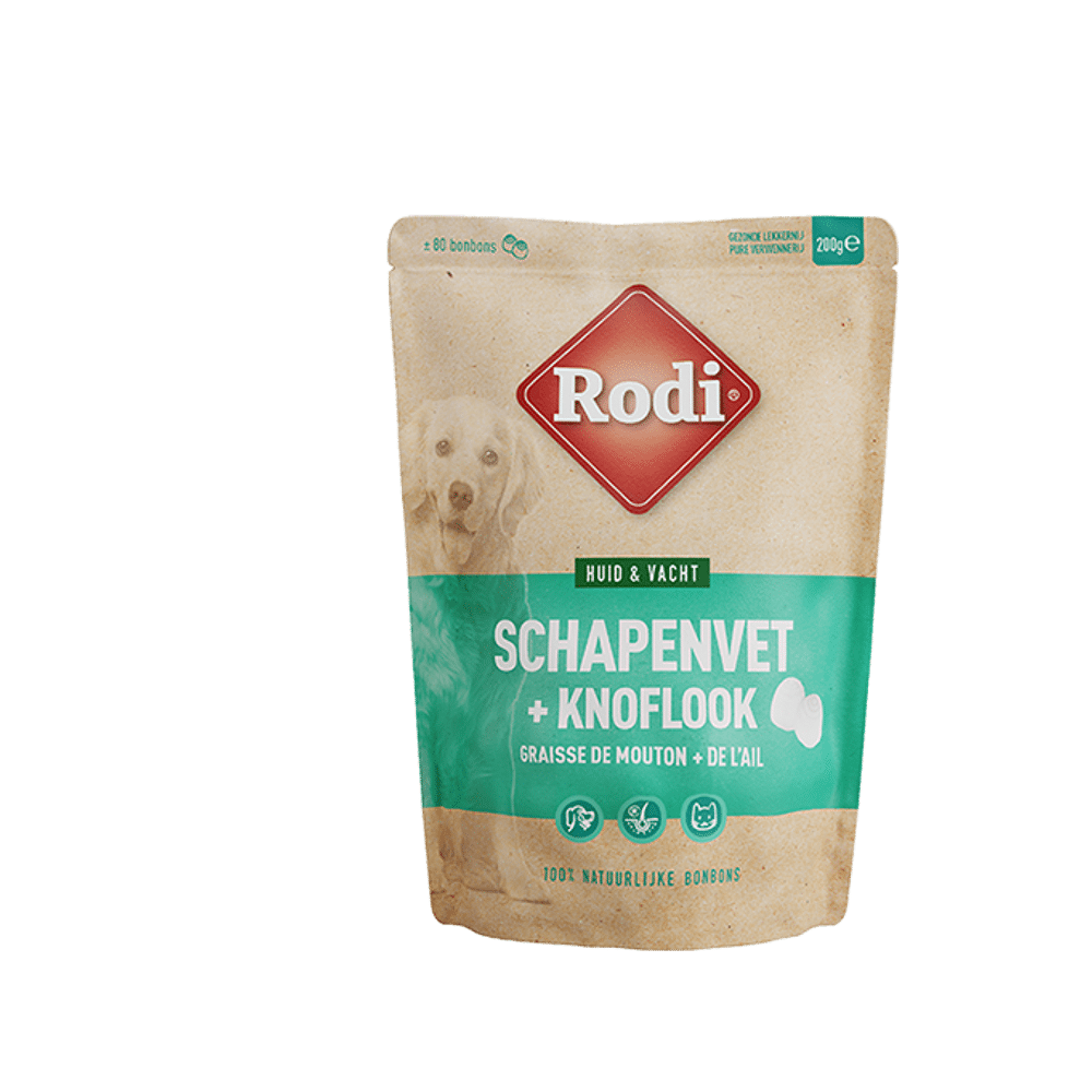 De traktaties van Rodi voorzien jouw hond van waardevolle verzadigde en onverzadigde vetten. Ze ondersteunen de huid en bevorderen een glanzende vacht. Bovendien is knoflook een natuurlijke bron van Aliine. Aliine is een stofje dat helpt bij de afweer van parasieten zoals vlooien, teken en wormen.