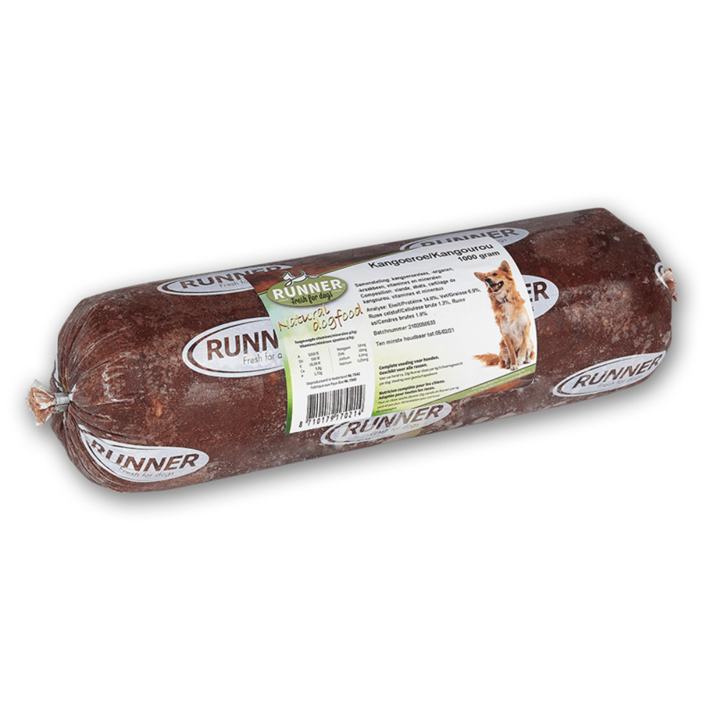 Samenstelling: 69,4% kangoeroevlees, 28,6% kangoeroeorganen ( lever, hart, nier, long).