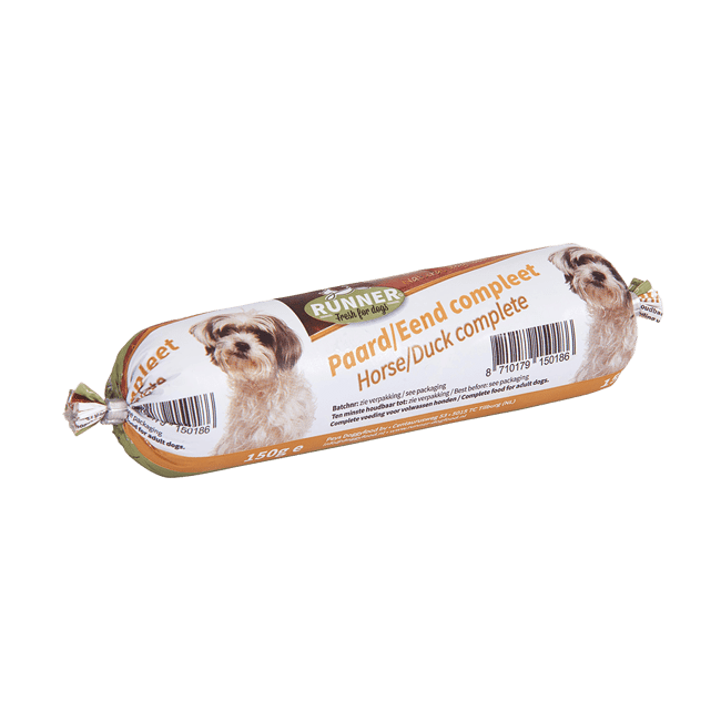 Smakelijke maaltijd op basis van paardenvlees met eend.