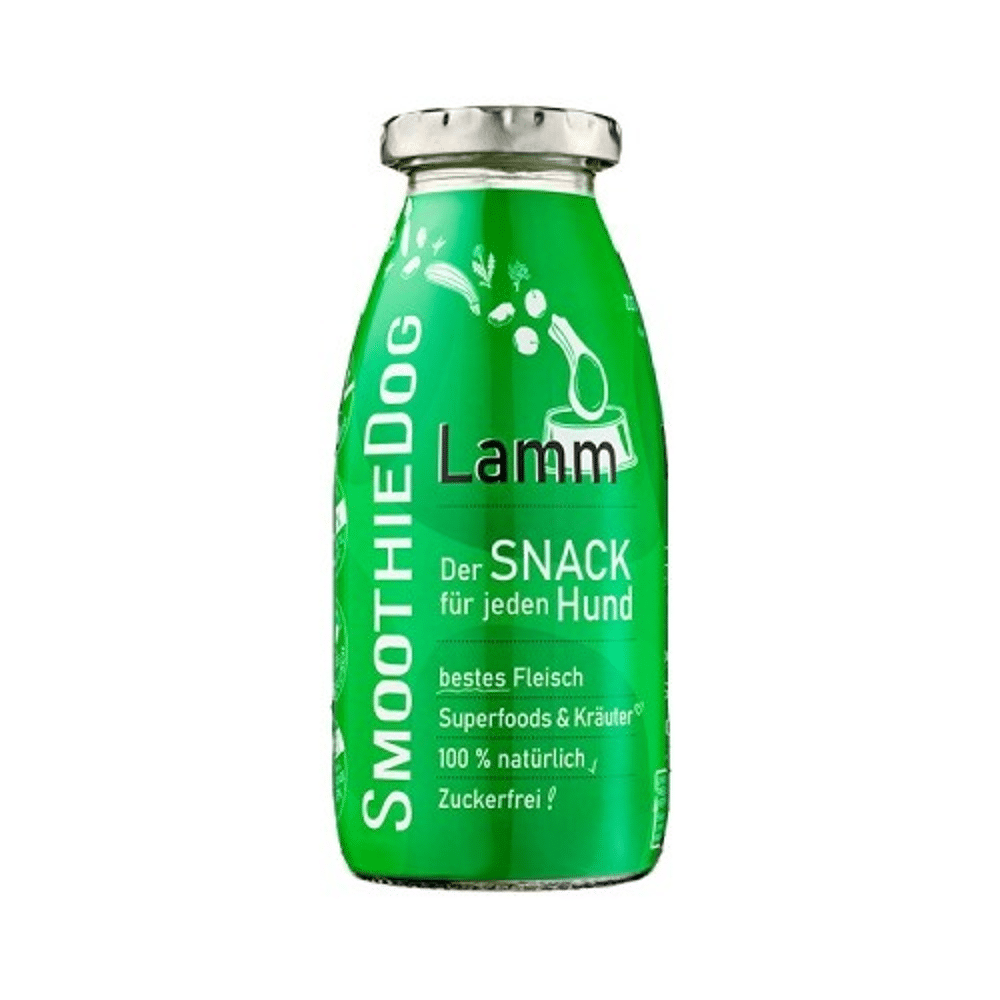 De groene hondensmoothie van SmoothieDog met echt goede ingrediënten. Lam is zeer goed verteerbaar en honden eten het graag. Wortelen, courgettes en appels zijn een voedingsrijke aanvulling en worden bovendien zeer goed verdragen. De gebruikte chiazaden worden gekenmerkt door hun hoge aandeel onverzadigde vetzuren en een hoog ijzer- en calciumgehalte, die ook ontstekingsremmende effecten kunnen hebben. Ze zorgen voor een glanzende vacht en een gezonde huid en klauwen bij de hond. De ingenieuze superfood Spirulina gemaakt van algen is gewoon goed voor honden en is daarom een essentieel onderdeel van onze hondensmoothie. Paardenbloem, basilicum en peterselie zijn nuttige kleine helpers in hondenvoeding.