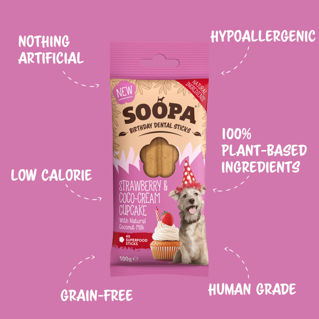 - Product: Soopa Dental Sticks Strawberry & Coco-Cream Cupcake 100gr