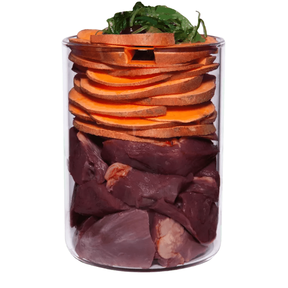 waterbuffelspiervlees (60%), zoete aardappel (36%), lijnzaadolie, koolzaadolie, zeewier*, mineralen