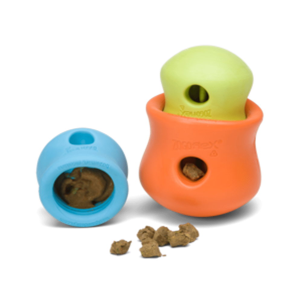 puzzel- en traktatiespeelgoed is ontworpen om te worden gevuld met de favoriete brokjes of lekkernijen van een hond. Toppl's zachte, ronde binnenste 'tanden' bevatten een voorgevormde holte om lekkernijen op hun plaats te houden totdat uw hond ze eruit duwt. Om de uitdaging te veranderen, verbindt u eenvoudig de kleine en grote met elkaar om Toppl nog stoerder te maken.
