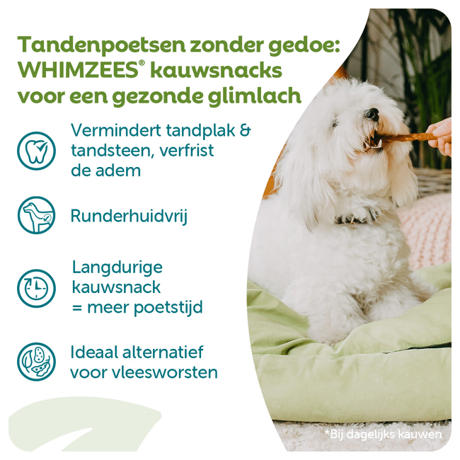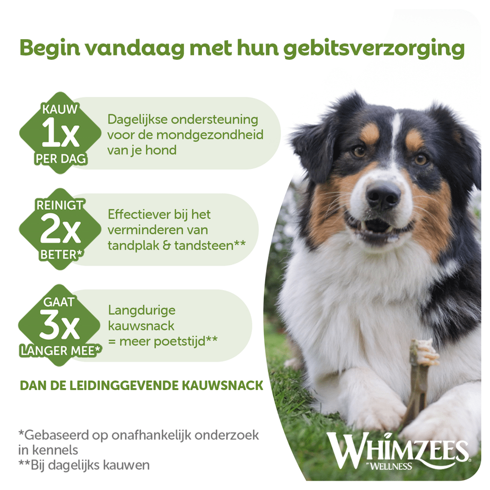 - De harde, plantaardige textuur helpt tandplak en tandsteen te verwijderen terwijl je hond kauwt.