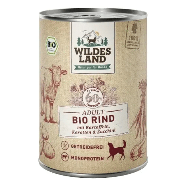 - Product: Wildes Land Bio Blik - Beef with sweet potatoes & zucchini 400g